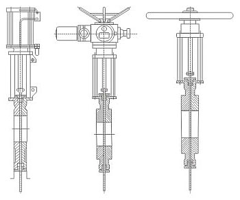 本產(chǎn)品驅(qū)動裝置可采用電動、氣動、手動、傘齒輪轉(zhuǎn)動等裝置。汽動裝置可安裝空氣過濾器、電磁閥、感應(yīng)器,如安裝以上驅(qū)動裝置,汽動裝置應(yīng)在合同中注明。 |