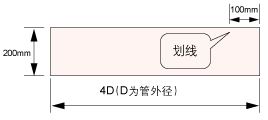 制作定位紙:取一條長4D(D為管徑),寬200mm(或D)的矩形紙帶,在距邊緣約100mm處劃一條線; |