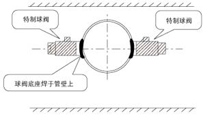 | 將球閥底座分別焊接在A和B兩點上。 注意球閥座中心點一定要分別與A和B兩點重合。 |