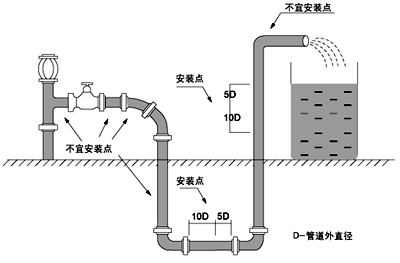 超聲波流量計的安裝在所有的流量計安裝中是為方便簡捷的,但為了保證測量精度,測量點應選擇管路部分,一般應遵循下列原則: